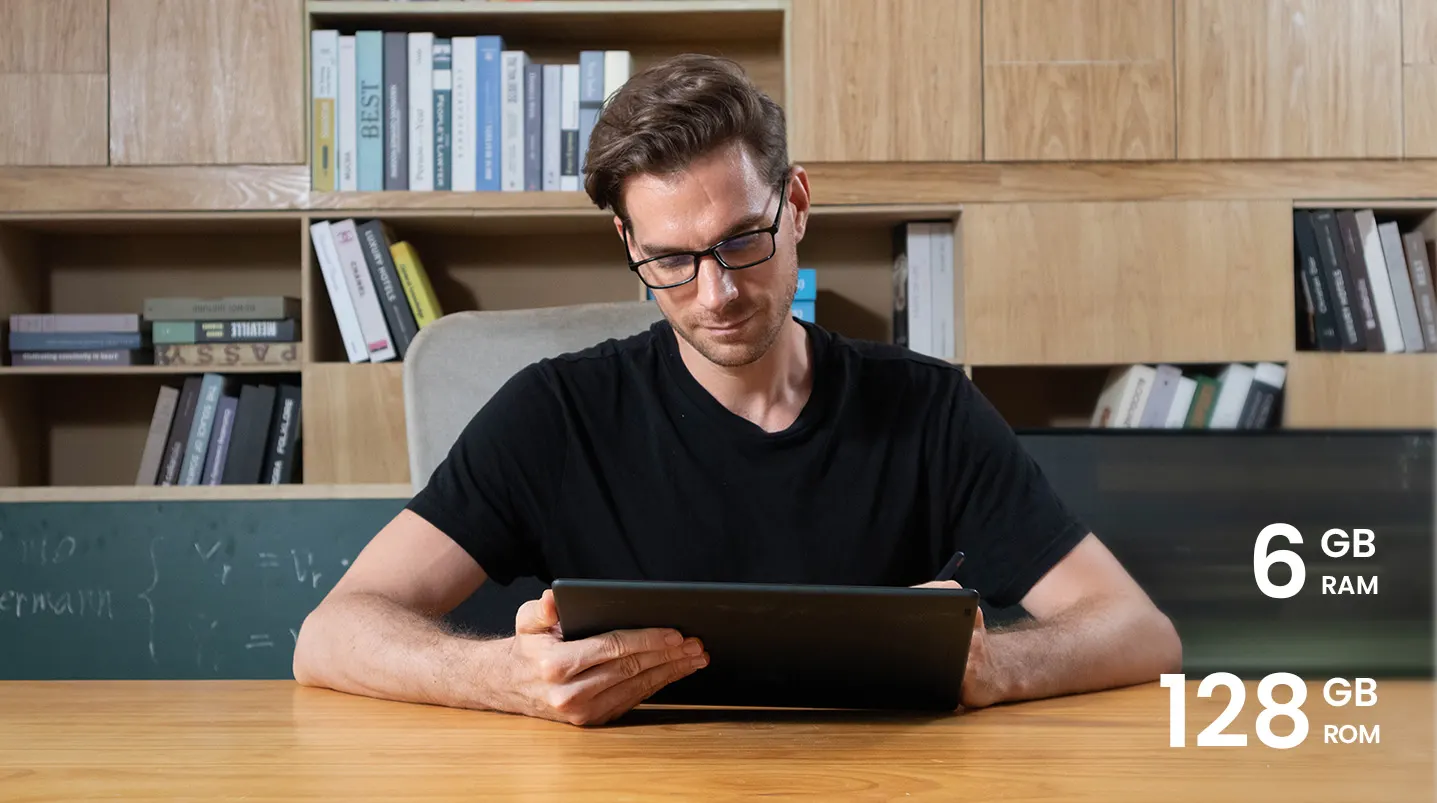 6GB RAM и 128GB ROM съхранение предлагат достатъчно място за вашите есета, отчети и бележки. А усъвършенстваните решения LPDDR4X и UFS 2.1 правят зареждането на файлове бързо и сигурно