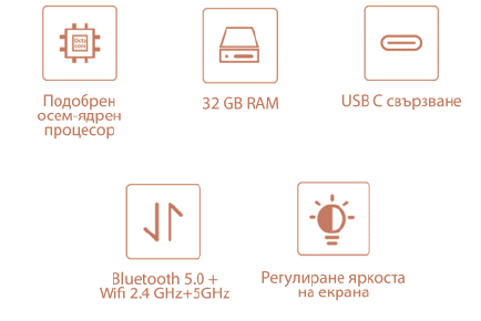 • Bluetooth модул дава възможност за свързване на различни външни устройства към книгата.